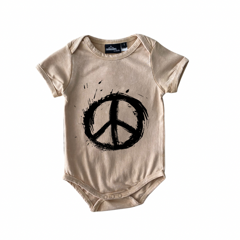MLW By Design - Peace Sign Stonewash Bodysuit | Black or Sand