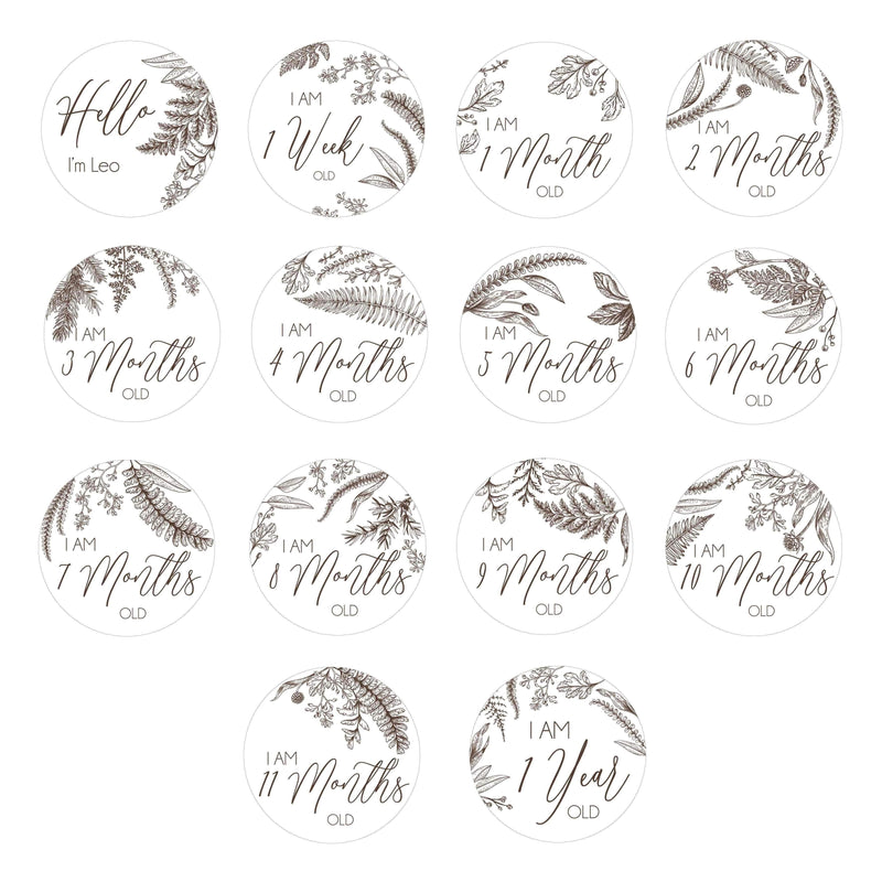 CMC GOLD - Personalised Foliage Milestone Cards (Set of 14)